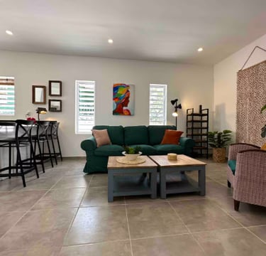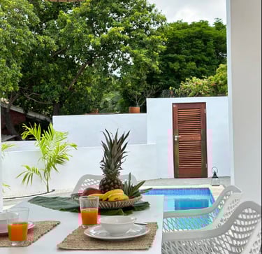 @HomeByPillow&Pool - private pool retreat is een centraal gelegen, stijlvol ingerichte bungalow in de rustige woonwijk Mahaai/Damacor. De woning biedt het comfort van thuis in een tropische setting en is geschikt voor 2 tot 6 gasten. Mambo Beach, Jan Thiel, Punda en Pietermaai liggen op ongeveer 13 minuten rijden.
